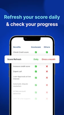 GoodScore: உங்கள் கிரெடிட் ஸ்கோரை மேம்படுத்தி, பலமான நிதி அடித்தளத்தை உருவாக்க உதவும் ஒரு கிரெடிட் ஸ்கோர் பில்டர் செயலி. GoodScore மூலம், உங்கள் CRIF ஸ்கோரை சரிபார்ப்பதை விட அதிகம் செய்யலாம். சிறந்த நிதி நிலைத்தன்மை மற்றும் எதிர்காலத்திற்கு GoodScore துணைபுரியும்.
