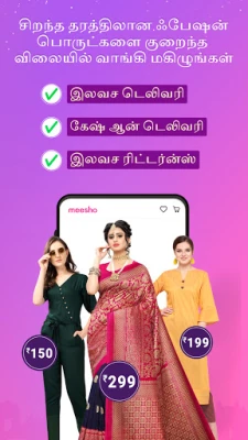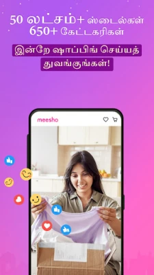 மீஷோ உங்கள் ஷாப்பிங் அனுபவத்தை மாற்றி அமைக்கிறது. பல்வேறு வகையான தரமானப் பொருட்களை நியாயமான விலையில் பெற விரும்பும் ஒவ்வொருவருக்கும், மீஷோ ஒரு சிறந்த தளமாகும். பெண்கள், ஆண்கள் மற்றும் குழந்தைகளுக்கான நவீன ஃபேஷன் ஆடைகள் முதல் வீட்டு உபயோகப் பொருட்கள், சமையலறை அத்தியாவசியங்கள், அழகு சாதனங்கள், அணிகலன்கள் மற்றும் மின்னணுப் பொருட்கள் வரை – 650க்கும் மேற்பட்ட வகைகளில், 50 லட்சத்திற்கும் அதிகமான தனித்துவமான தயாரிப்புகள் இங்கு குவிந்துள்ளன. உங்கள் ஒவ்வொரு தேவையையும் பூர்த்தி செய்யும் ஒரு முழுமையான சந்தையாக மீஷோ விளங்குகிறது.