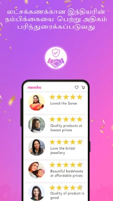 மீஷோ ஆப் மூலம் உங்களுக்காக ஷாப்பிங் செய்யுங்கள் அல்லது முதலீடின்றி ஆன்லைனில் பணம் சம்பாதிக்கலாம். ஸ்டைலான உயர்தர லைஃப் ஸ்டைல் தயாரிப்புகளை குறைந்த மொத்த விலையில் பெறுங்கள். வீட்டிலிருந்தபடியே உங்கள் பிசினஸைத் தொடங்குங்கள்.