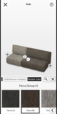 உங்கள் விருப்பமான சோபாவை மனதில் கொண்டு, இந்தக் கருவியைப் பயன்படுத்தி, உங்கள் வீட்டிற்கான சரியான தோற்றத்தை உருவாக்கத் தொடங்குங்கள். எண்ணற்ற வடிவங்கள், அளவுகள், தொகுதிகள் மற்றும் மெத்தைகளைத் தனிப்பயனாக்கும் வாய்ப்புடன், தரமான துணிகளின் பெரும் தொகுப்பிலிருந்து தேர்ந்தெடுத்து, உங்கள் தளபாடங்களை உண்மையான நேரத்தில் மாற்றியமைக்கலாம். நாற்காலி அமைப்புகள் அல்லது படுக்கை வழிமுறைகள் போன்ற நகரும் பாகங்களின் மென்மையான செயல்பாட்டையும், ஒவ்வொரு பகுதியையும் முழுமையாகக் கண்டறியும் சுழற்றுதல் வசதியையும் இது வழங்குகிறது.
