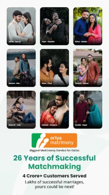 ஒடியா மக்களுக்காக பிரத்யேகமாக உருவாக்கப்பட்ட நம்பர் 1 மற்றும் அதிகாரப்பூர்வ ஓரியா மேட்ரிமோனி செயலியை வரவேற்கிறோம். ஆயிரக்கணக்கான ஒடியா மணமகன் மற்றும் மணமகள்களை கண்டறிந்து, உங்கள் வாழ்க்கைத் துணையைத் தேட நம்பகமான தளம் இது.
