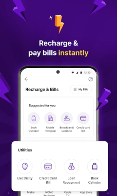 PhonePe ஒரு பணம் செலுத்தும் செயலி. BHIM UPI, கிரெடிட் கார்டு, டெபிட் கார்டு அல்லது வாலட் மூலம் மொபைல் ரீசார்ஜ் செய்யவும், பில் கட்டணங்களைச் செலுத்தவும், கடைகளில் உடனடியாகப் பணம் செய்யவும் உதவுகிறது. மியூச்சுவல் ஃபண்டுகளில் முதலீடு செய்யவும், கார், பைக் காப்பீடு உட்பட காப்பீட்டுத் திட்டங்களை வாங்கவும் PhonePe பயனுள்ளதாக இருக்கும்.