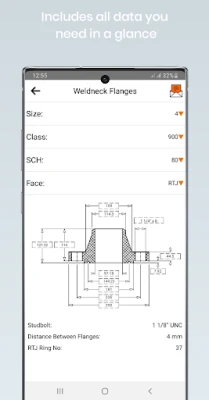 உங்கள் திட்டங்களுக்கு அத்தியாவசியமான பைப் பாதுகாப்பான இடைவெளி மற்றும் பைப் நெகிழ்வுத்தன்மை போன்ற முக்கியமான கணக்கீடுகளை பைப்பிங் டூல்பாபாக்ஸ் மிக எளிதாக்குகிறது. மேலும், பைப், ஃபிளேன்ஜ்கள், ஃபிட்டிங்குகள், ஓலெட்டுகள், லைன் பிளாங்குகள் மற்றும் வால்வுகள் போன்ற பல்வேறு பைப்பிங் பொருட்களின் விரிவான பரிமாணத் தகவல்களை இது உள்ளடக்கியுள்ளது. ASME B16.5, B16.47, B16.9, B16.11, B16.48, B16.10 போன்ற சர்வதேசத் தரநிலைகளின் அடிப்படையில், வெல்ட்னெக் ஃபிளேன்ஜ்கள், பட்வெல்ட் ஃபிட்டிங்குகள், வெல்டோலெட்டுகள், ஃபிஃபர்-8 பிளாங்குகள் மற்றும் கேட் வால்வுகள் உள்ளிட்ட நூற்றுக்கணக்கான விவரங்கள் இங்கு கிடைக்கின்றன. இந்த விரிவான தகவல்கள் உங்கள் வடிவமைப்பு மற்றும் உற்பத்திச் செயல்முறைகளுக்கு அசைக்க முடியாத ஆதாரமாக அமையும்.
